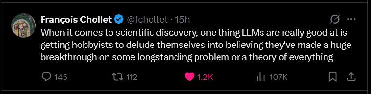 A recent remark by François Chollet crystallized a failure mode that has become increasingly visible in the age of large language models. These systems are exceptionally effective at helping people persuade themselves that they have achieved genuine scientific breakthroughs. The force of the remark lies in its structural character. It is not an accusation of bad faith, intellectual laziness, or amateur ambition. It names a systematic confusion between coherence and constraint.