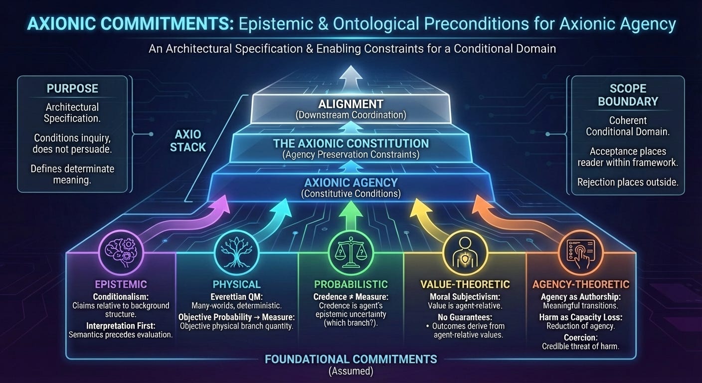 Axionic Commitments specify the background conditions under which agency is intelligible.