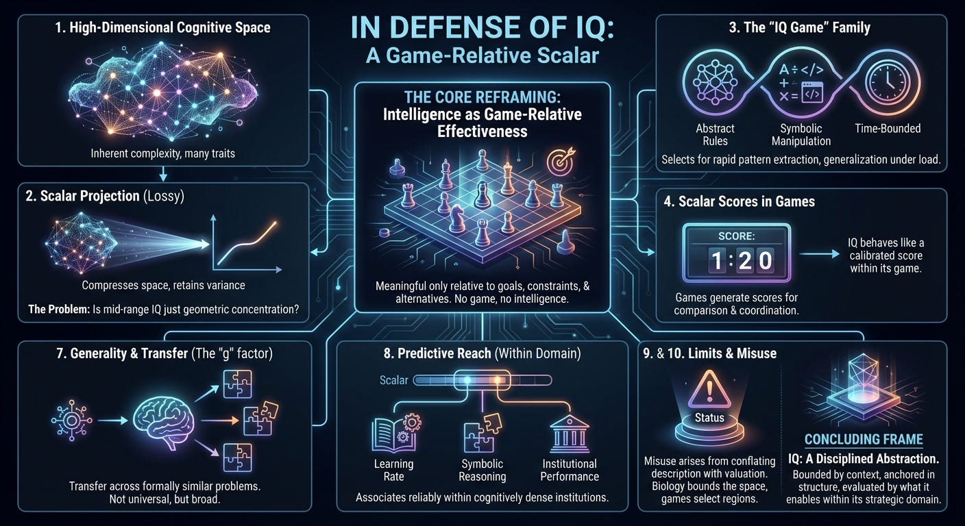 Defending IQ in this sense amounts to defending disciplined abstraction—bounded by context, anchored in structure, and evaluated by what it enables rather than by what it excludes.
