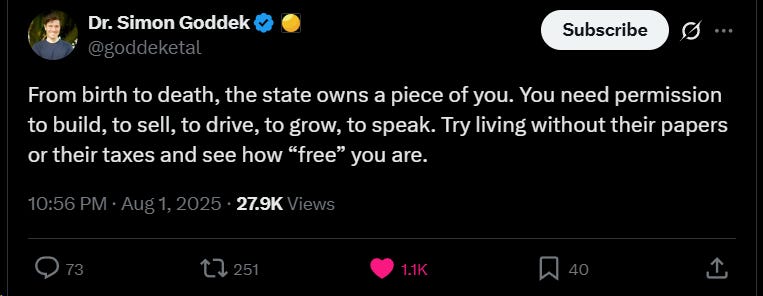 If ownership is truly defined by enforceable rights—use, exclusion, and disposal—then undeniably, a substantial part of you is effectively state-owned. Recognizing this technical truth reframes how we must view our relationship to governance, freedom, and autonomy.