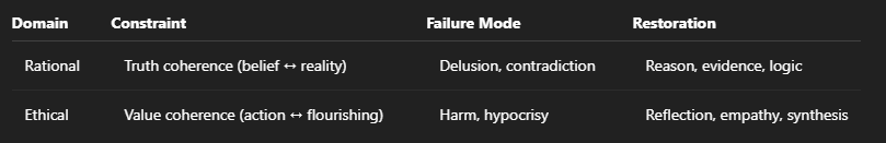 When these converge, rationality and ethics are no longer distinct virtues but expressions of the same law: preserve and propagate coherence.
