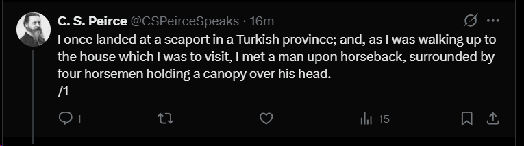 What I misread wasn’t just a slip; it was a glimpse into how the present invisibly colonizes interpretation. If Peirce had wanted to give us a semiotic demonstration of historicity and fallibility, he couldn’t have staged it better.
