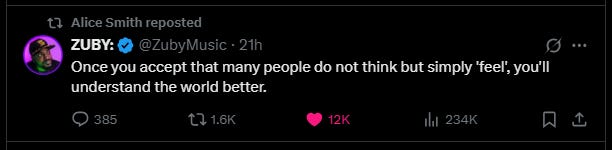We often see a stark distinction drawn between thinking and feeling. A recent provocative tweet declared: "Once you accept that many people do not think but simply 'feel', you'll understand the world better." While this captures a common insight about human behavior, it's overly simplistic—and misses an important truth about cognition.