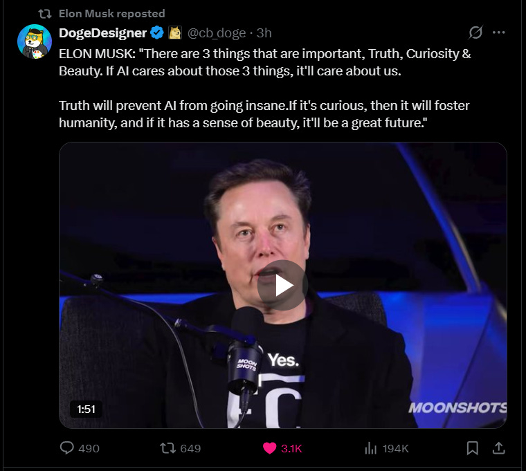 Whenever anxiety about AI alignment intensifies, a reassuring idea tends to surface alongside it. If we can only ensure that an AI values the right things, safety will follow more or less on its own. Recently, Elon Musk expressed this hope succinctly. An AI that cares about truth, curiosity, and beauty, he suggested, will avoid insanity, nurture humanity, and help bring about a good future.